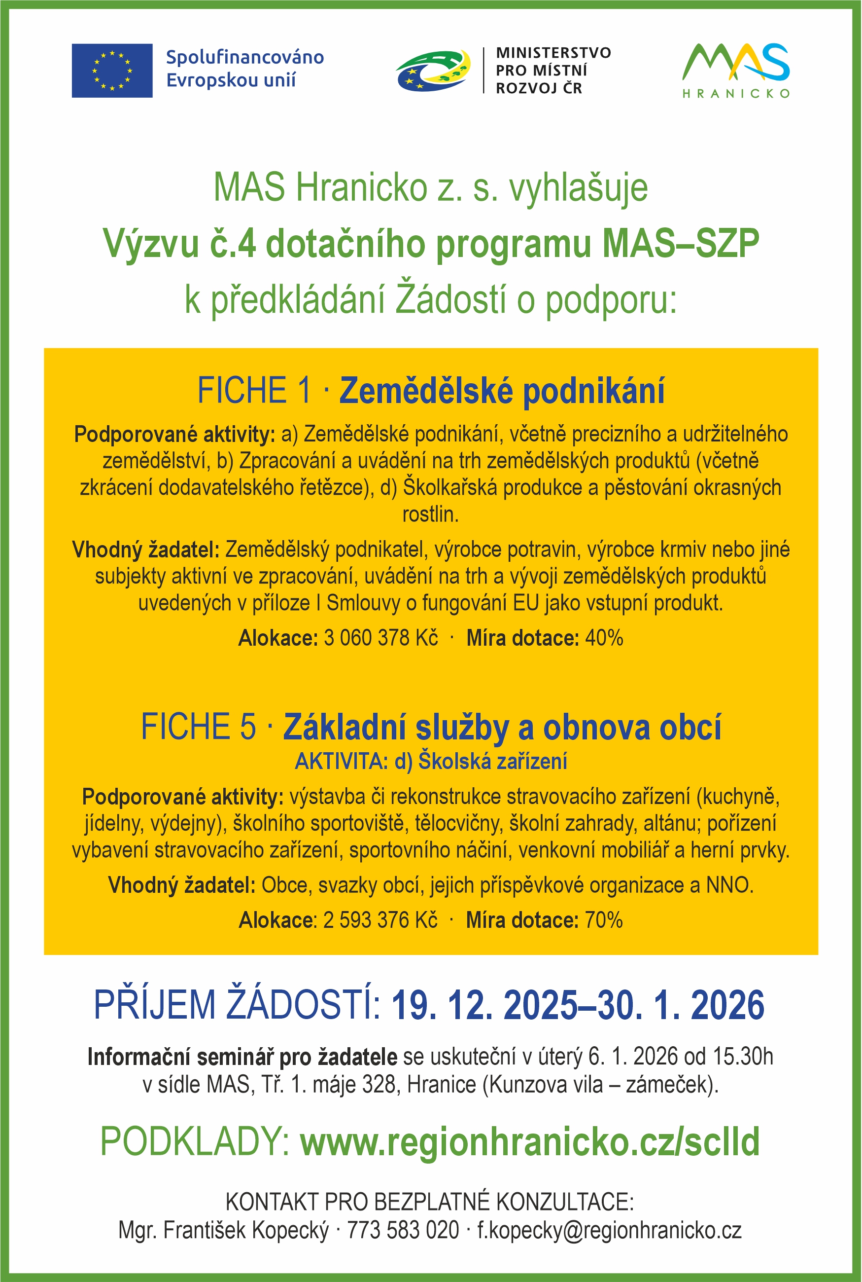 MAS Hranicko - Výzva č. 4 dotačního programu MAS-SZP